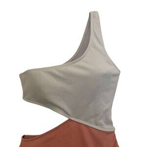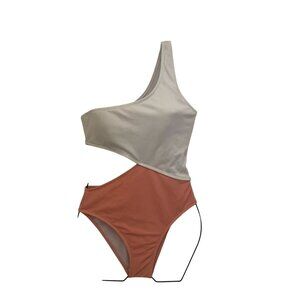 Elevate your swimwear collection with this stylish one-shoulder swimsuit featuring a chic cutout and ribbed texture. The colorblock design offers a full coverage fit, perfect for lounging by the pool or a day at the beach.