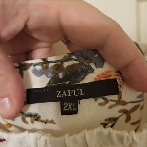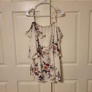 Zaful plus size white floral cold shoulder blouse, size 2XL, short-sleeved, ties at end of sleeve creating a small keyhole, straps are adjustable, elastic around top of blouse, no context tag, lightweight no stretch material, excellent condition.