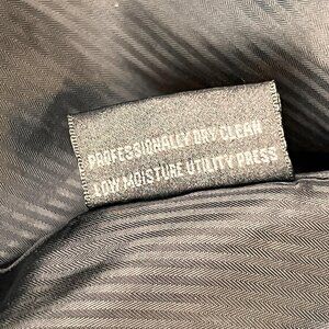 Three exterior flap pockets, one chest pocket, four-button cuffs, double rear vents