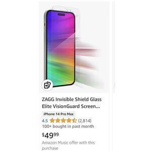 Zagg invisible Shield glass elite Visionguard iPhone 14 Pro Max Protector