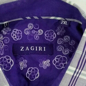 Zagiri 2XL Men's Purple White Green Blue Plaid Embroidered Logo Cotton Shirt