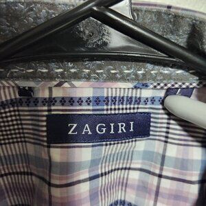 Zagiri Button Front Shirt Mens Size Large Flip Cuffs Plaid Long Sleeve
