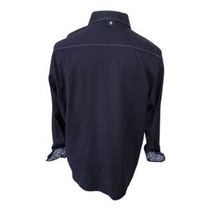 Zagiri Men Navy Long Sleeve Button Down White Stitching Emroidery Dress Shirt XL