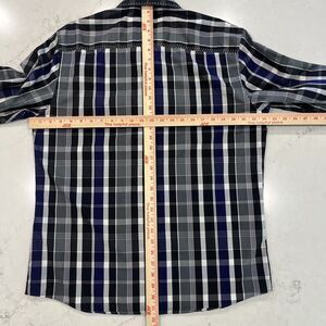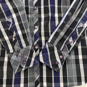 Zagiri Mens L Purple Black Plaid Button Up Flip Cuffs Embroidered Stich Shirt