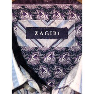 Zagiri Shirt Mens XL Button Front Flip Cuff Purple Striped