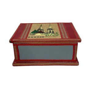 Zagreb Red Fabric Trinket Box "City of Croatia" 5.5" by 4.5" by 2.25" Very nice condition