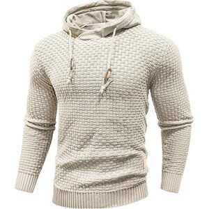 Zaitun Mens Hooded Sweatshirt Long Sleeve Solid Knitted Hoodie Pullover Sweater