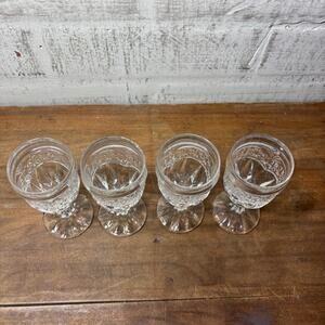 Crystal glass goblet glasses/ shot glasses set of four, one has a flaw can be seen in a photo, made by Zajecar D’Adriana, 3.5” tall 1.5” wide