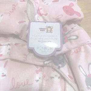 Zak & Zoey Toddler Girl Plush Bathrobe 0-9 Months Pink and white with Clouds