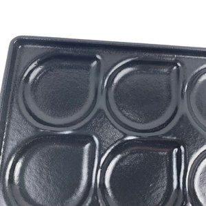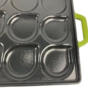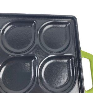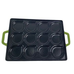 Zakarian cast iron seafood pan with handles. Non stick surface. Green bottom & handles. Oven safe.