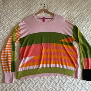 Zaket And Plover Womens Size L Cotton Silk Blend Colorblock Diagonal Sweater