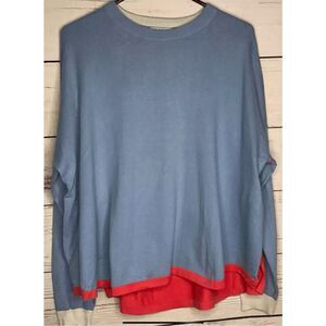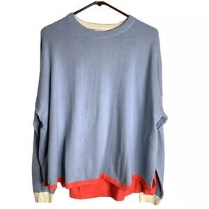 Zaket & Plover Knit Sweater Womens XL Cashmere Blend Blue Coral/Pink Colorblock