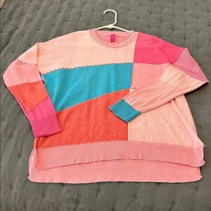 Zaket and Plover Patchwork 100% Cotton Sweater Pink Blue Size Small