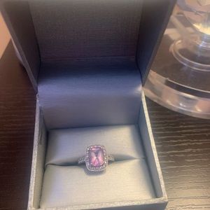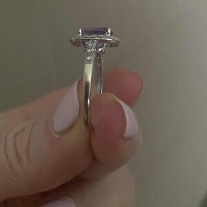 Cushion cut ,amethyst-white-topaz-trisides-ring-10k-white-gold. Light purple size 7