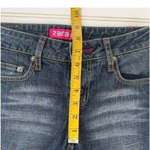 Zana Di Vintage Dark Blue Denim Straight Leg Cuffed Jeans with Pink contrast abstract Stitching