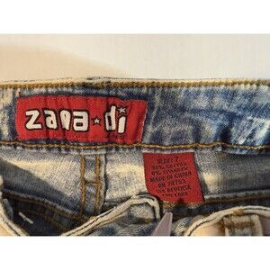 Zana Di is a brand known for its denim, particularly styles popular in the 90s and Y2K era, including flare, bootcut, and patchwork designs. The jeans in the image feature a distressed, faded wash and a wider leg opening, consistent with vintage Zana Di styles.