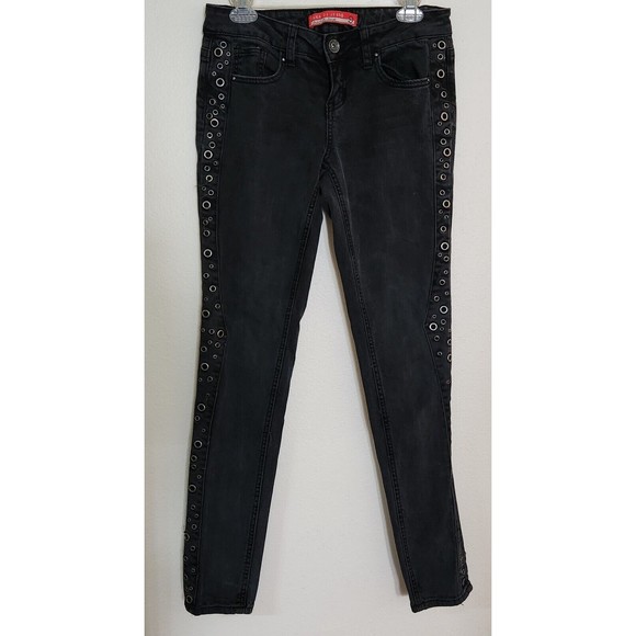 Zana Di Jeans Black Biker Stretch Side Metal Rivets Small Women Size 9