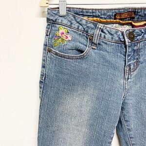 Zana Di Womens 90s Y2K Floral Embroidered Rhinestone Low Rise Flare Jean Size 9