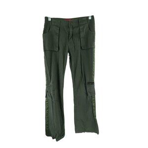 Zana Di Women's Army Green Cargo Pants Sz 14 Striped Legs Pockets Zipper Y2K Rav