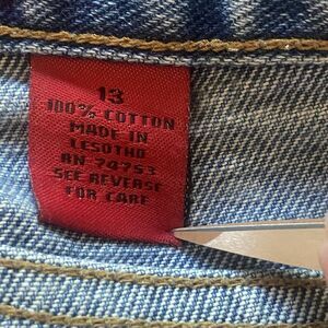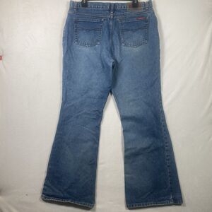 Classic Y2K-era Zana-Di women’s jeans featuring a wide flare leg silhouette and 100% cotton rigid denim construction. Mid- to high-rise fit with zip fly, back patch pockets, and iconic red Zana-Di branding on waistband and pocket tag. Made in Lesotho.Details:Brand: Zana-DiSize: 13Material: 100% Cotton (non-stretch)Color: Medium BlueStyle: Wide / Flare Leg JeansRise: 11.5"Inseam: 30.5"Waist: 16.5" (33" around)Leg Opening: 11"Made in LesothoCondition: Gently pre-owned, clean with minimal wear.