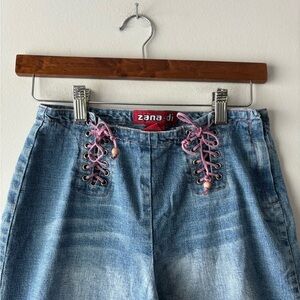 Great conditions Zana Di Y2k capris. No stains, rips or bad odor. Color blue and pink. Has a side zipper for clpusure and two back pockets. Trendy y2k style. Please see pictures of more details.