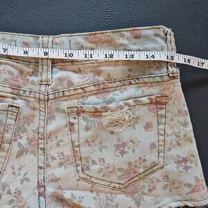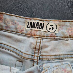 Zanadi floral denim shorts. Short short denim shorts, floral print all over. Size 5.