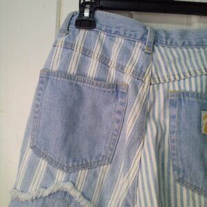 Zanadi Shorts Women 11 12 Denim Vintage High Rise Stripe Spellout Pocket Blue