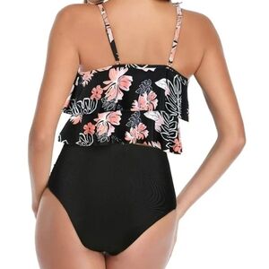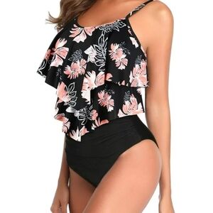 Zando Tankini Two Piece Swimwear Flouncy Top High Waisted Bottom Floral Size XXL
