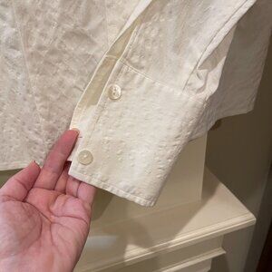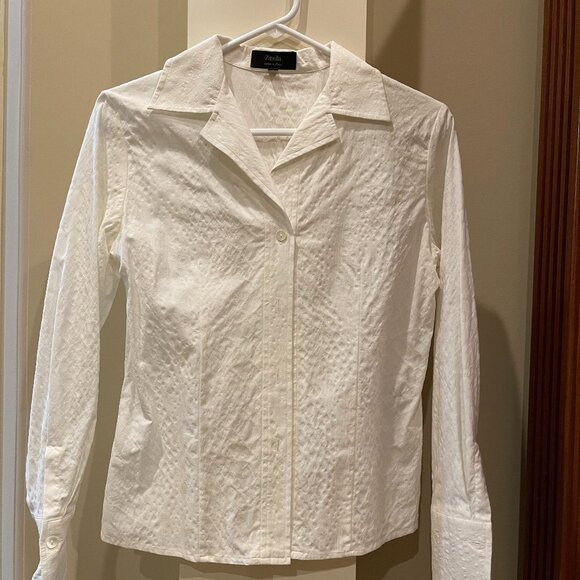 White tapered cut Italian stretch fabric top. Beautiful fit when worn. Stunning with jeans or suit