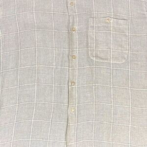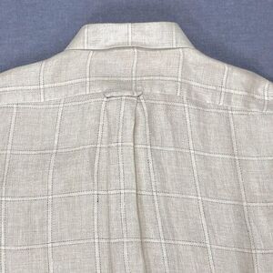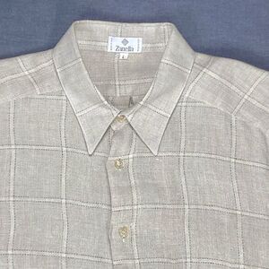 - Description: Zanella Linen Button Down Shirt Men L Tan Striped Breathable Summer Resort-Ready