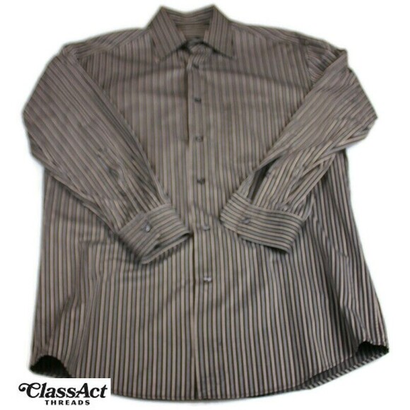 Zanella Shirt Mens Black Striped Textured Button Up Long Sleeve Cotton Itlay M