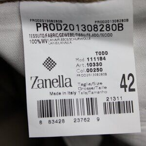 Zanella Todd Dress Pants NWT Mens 42 Beige 100% Wool Flat Front Unhemmed
