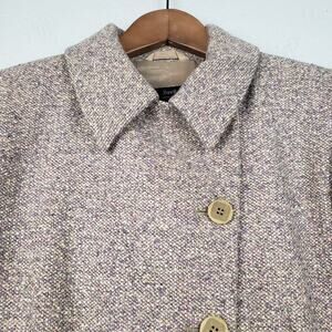 Zanella Tweed Blazer Made in Italy - 6 in excellent condition. Amethyst, gold, grey, cream, peach tweed. Offset asymmetrical button front. High collar. Really pretty silhouette