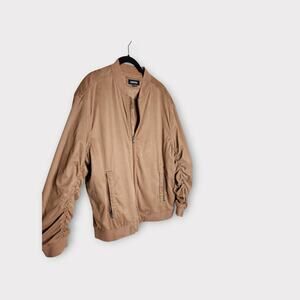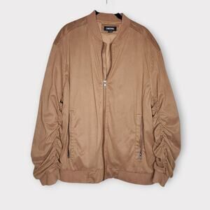 Zanerobe Men's Faux Suede Bomber Jacket Tan Zip Up Ruched Sleeve Size L Casual
