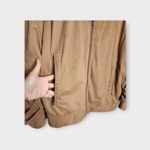 Zanerobe Faux Suede Zip Up Bomber Jacket Pockets Tan Camel