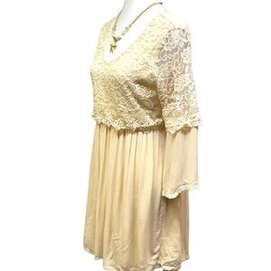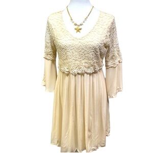 Zanzea Boho Cream Lace Bell Sleeves Dress