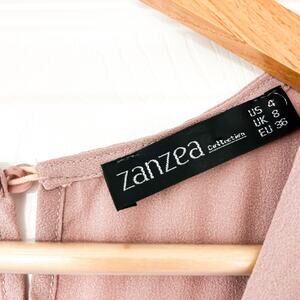 Zanzea Mauve Pleated Long Sleeve Tunic Blouse High Low Hem Size 4 EUC