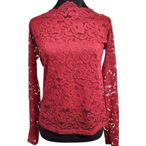 Zanzea Red Long Sleeve Lace with Liner Blouse Women's Size 10 NWT