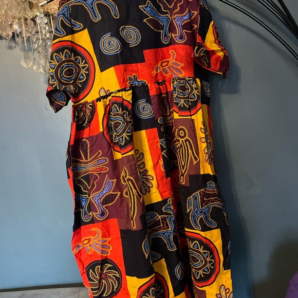 Bold maxi dress with striking red and yellow patterns. Eye-catching design by Zanzea.