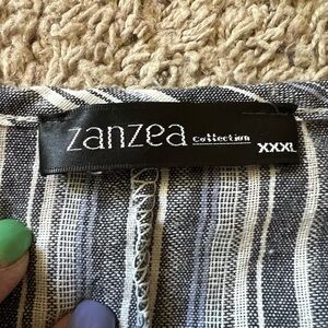 Stylish Zanzea maxi dress. Features black and white stripes. Comfortable and elegant design. Size 3XL Smoke free home