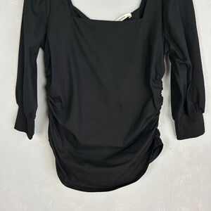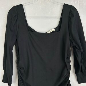 Zapelle Eshakti size L 12 square neck top black ruched 3/4 sleeve cotton stretch