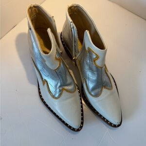 Zappa Silver Western Ankle Boots Women’s 35 EU 5 US Leather Pointed Toe Studded