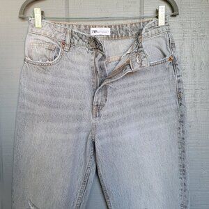 Zara 100% Cotton Vintage-Inspired Look High-Rise Distressed Gray Jeans. Size 6