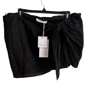 Zara 100% Linen Mini Skirt Brown- ZW Collection, Adjustable Knot, Size Large