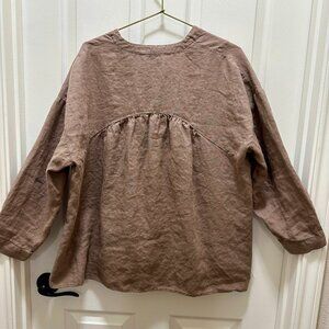 Zara 100% Linen Oversized Tunic Top Women's Size XS Brown Boho Feminine Gypsy