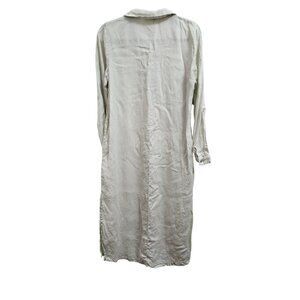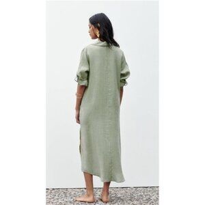 Zara 100% Linen Shirt Dress Long Sleeve Khaki Green Button Front