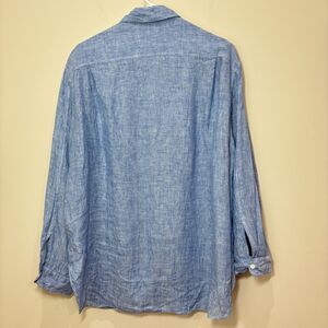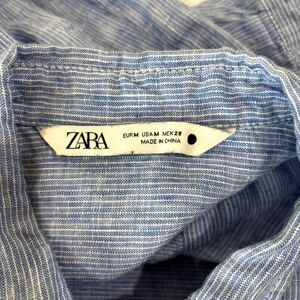 Features: Zara Men's 100% Linen Shirt. Casual Button Up. Striped Blue.