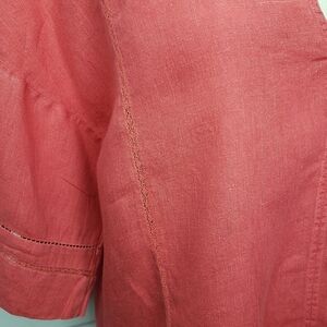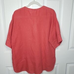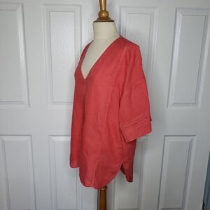 Zara 100% Linen Top V Neck Popover Drop Shoulder Small Poppy Red Hi Low