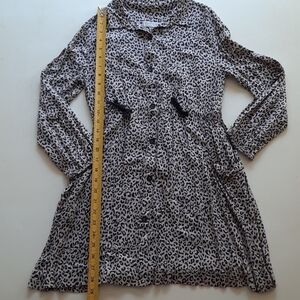 Zara size 11 12 animal leopard print long sleeve button down dress. Very good pre-owned condition. Smoke free pet friendly home. Please see pictures for measurements. Has pockets. Dress leopard animal print button down long sleeve 11 12 Zara