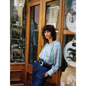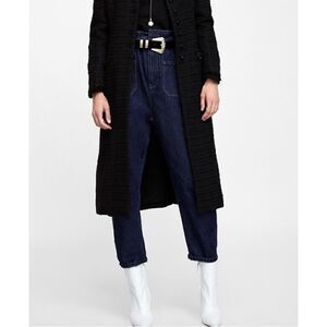 Zara 1975 Denim Pull-On Paperbag Waist Front Patch Pockets Balloon Tapered Jeans